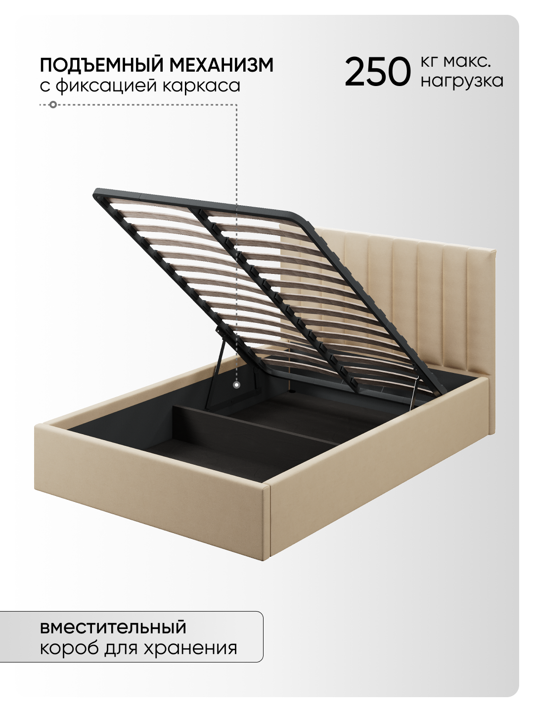 Двуспальная Кровать Алина из Велюра Премиум класса, ортопедическим основанием, с подъёмным механизмом, бельевым ящиком и спальным местом 140*200 см - удобное место для сна и отдыха, который совмещает в себе полноценную кровать от фабрики комфортной мебели МиЛоже.