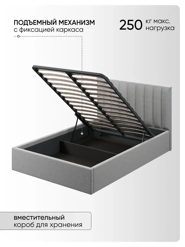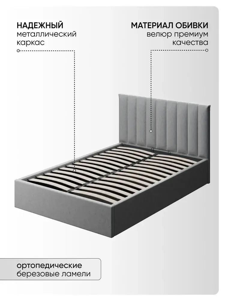 Двуспальная Кровать Алина из Велюра Премиум класса, ортопедическим основанием, с подъёмным механизмом, бельевым ящиком и спальным местом 140*200 см - удобное место для сна и отдыха, который совмещает в себе полноценную кровать от фабрики комфортной мебели МиЛоже.