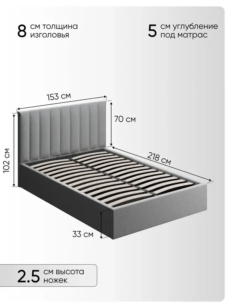 Ортопедическое основание с подъёмным механизмом и ламелями, изготовленные из экологически чистых пород древесины, выдерживают нагрузку до 125 кг. 10 летняя гарантия на металлическую рамку. Газлифты повышенной мощности позволяют поднимать и опускать ортопедическую рамку с матрасом без всяких усилий.