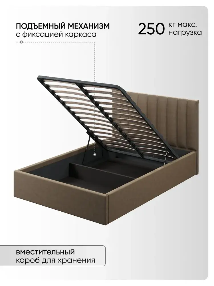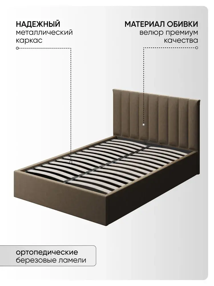 Двуспальная Кровать Алина из Велюра Премиум класса, ортопедическим основанием, с подъёмным механизмом, бельевым ящиком и спальным местом 140*200 см - удобное место для сна и отдыха, который совмещает в себе полноценную кровать от фабрики комфортной мебели МиЛоже.