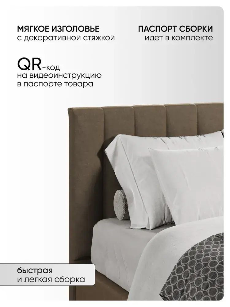 Подкроватное пространство закрыто противопыльным матерчатым коробом из плотного Спанбонда и служит для постельного белья и прочих принадлежностей. Спанбонд - это экологически чистый, 100% полипропиленовый нетканый материал, устойчив к сминанию и стиранию, устойчив к воздействию кислот и щелочей, имеет низкое водовпитывание, не гниёт и не плесневеет, что способствует его длительному использованию.