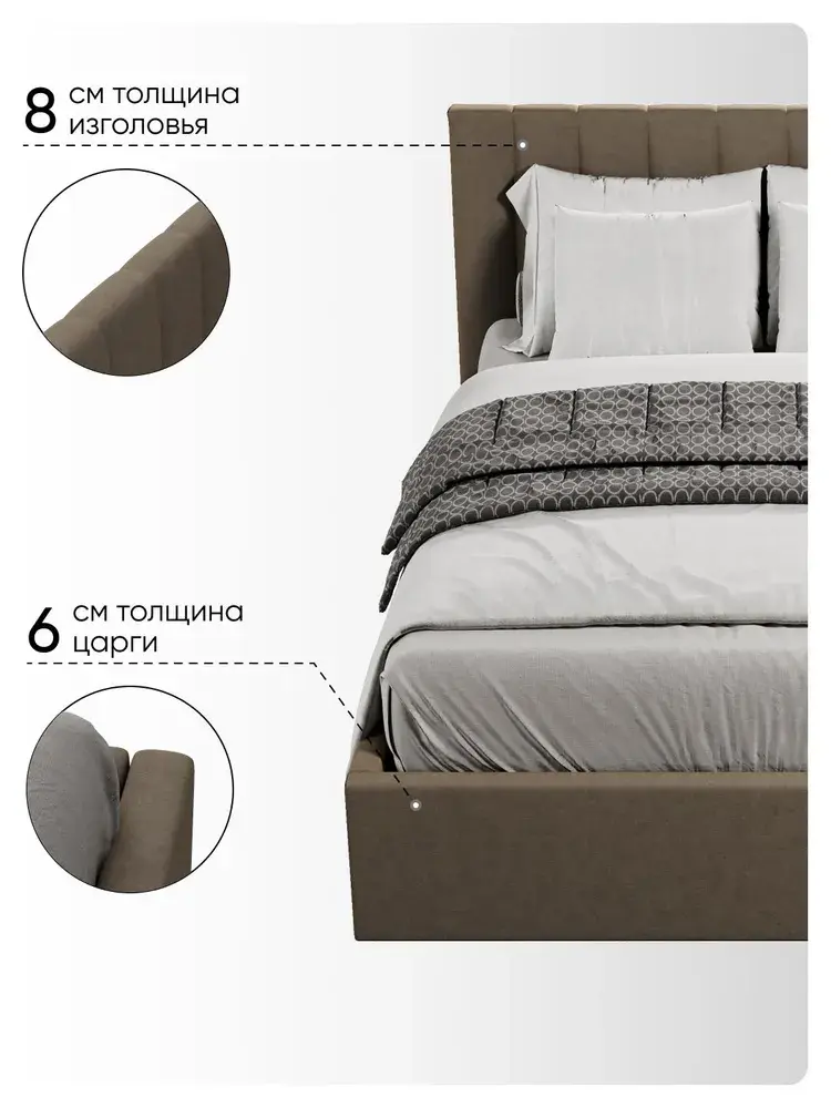 Ортопедическое основание с подъёмным механизмом и ламелями, изготовленные из экологически чистых пород древесины, выдерживают нагрузку до 125 кг. 10 летняя гарантия на металлическую рамку. Газлифты повышенной мощности позволяют поднимать и опускать ортопедическую рамку с матрасом без всяких усилий.