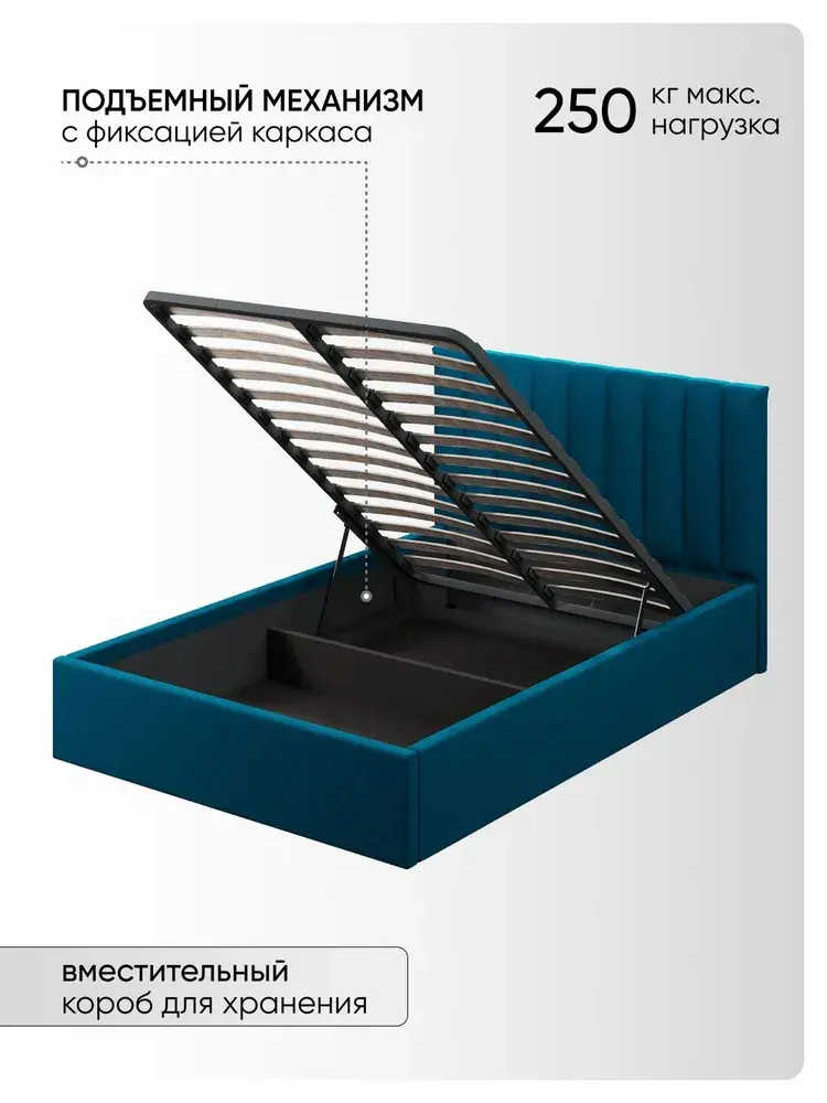 Двуспальная Кровать Алина из Велюра Премиум класса, ортопедическим основанием, с подъёмным механизмом, бельевым ящиком и спальным местом 140*200 см - удобное место для сна и отдыха, который совмещает в себе полноценную кровать от фабрики комфортной мебели МиЛоже.