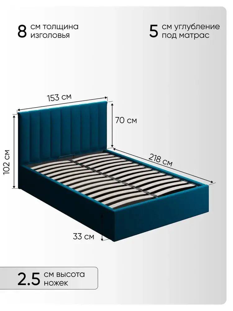 Подкроватное пространство закрыто противопыльным матерчатым коробом из плотного Спанбонда и служит для постельного белья и прочих принадлежностей. Спанбонд - это экологически чистый, 100% полипропиленовый нетканый материал, устойчив к сминанию и стиранию, устойчив к воздействию кислот и щелочей, имеет низкое водовпитывание, не гниёт и не плесневеет, что способствует его длительному использованию.