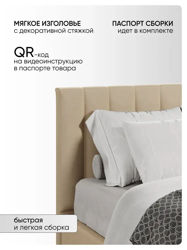 Подкроватное пространство закрыто противопыльным матерчатым коробом из плотного Спанбонда и служит для постельного белья и прочих принадлежностей. Спанбонд - это экологически чистый, 100% полипропиленовый нетканый материал, устойчив к сминанию и стиранию, устойчив к воздействию кислот и щелочей, имеет низкое водовпитывание, не гниёт и не плесневеет, что способствует его длительному использованию.