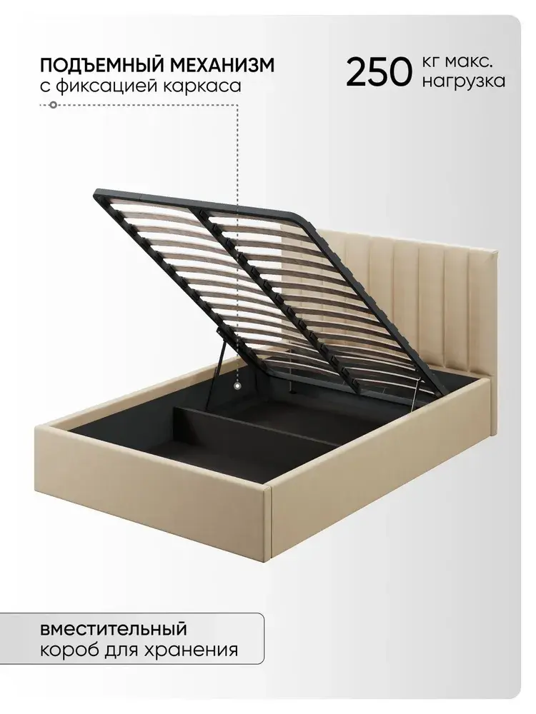 Двуспальная Кровать Алина из Велюра Премиум класса, ортопедическим основанием, с подъёмным механизмом, бельевым ящиком и спальным местом 160*200 см - удобное место для сна и отдыха, который совмещает в себе полноценную кровать от фабрики комфортной мебели МиЛоже.