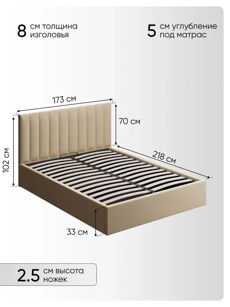 Ортопедическое основание с подъёмным механизмом и ламелями, изготовленные из экологически чистых пород древесины, выдерживают нагрузку до 125 кг. 10 летняя гарантия на металлическую рамку. Газлифты повышенной мощности позволяют поднимать и опускать ортопедическую рамку с матрасом без всяких усилий.