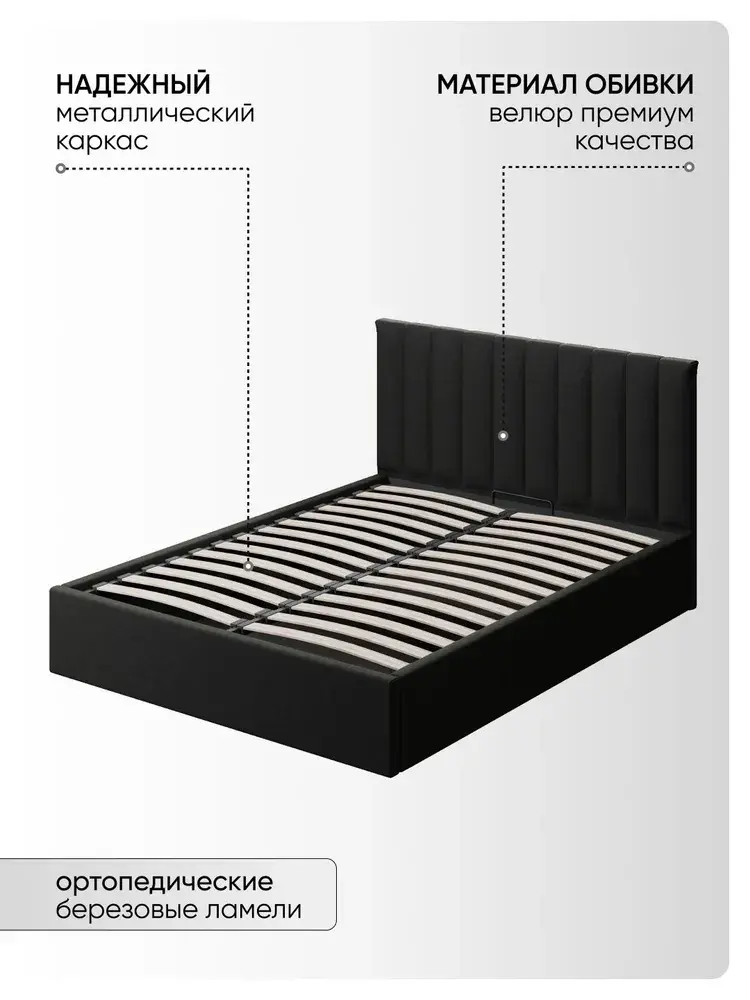 Двуспальная Кровать Алина из Велюра Премиум класса, ортопедическим основанием, с подъёмным механизмом, бельевым ящиком и спальным местом 160*200 см - удобное место для сна и отдыха, который совмещает в себе полноценную кровать от фабрики комфортной мебели МиЛоже.