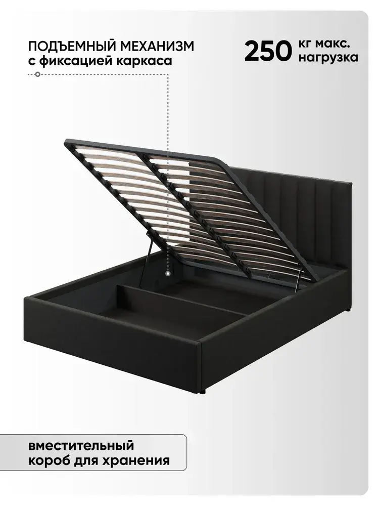 Ортопедическое основание с подъёмным механизмом и ламелями, изготовленные из экологически чистых пород древесины, выдерживают нагрузку до 125 кг. 10 летняя гарантия на металлическую рамку. Газлифты повышенной мощности позволяют поднимать и опускать ортопедическую рамку с матрасом без всяких усилий.
