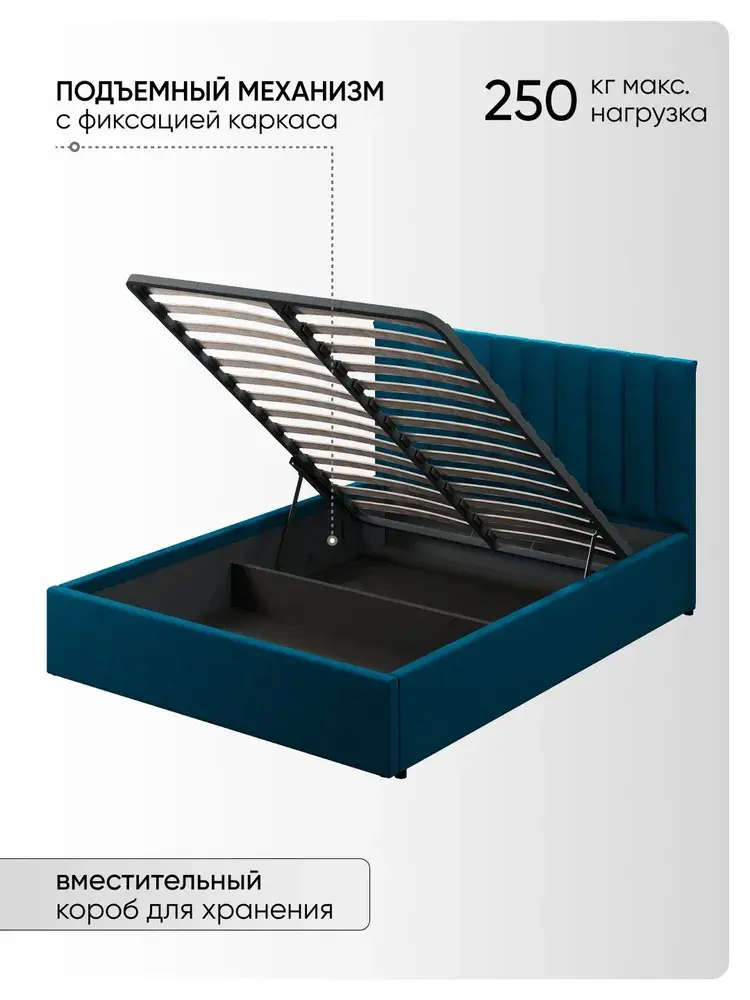 Двуспальная Кровать Алина из Велюра Премиум класса, ортопедическим основанием, с подъёмным механизмом, бельевым ящиком и спальным местом 160*200 см - удобное место для сна и отдыха, который совмещает в себе полноценную кровать от фабрики комфортной мебели МиЛоже.