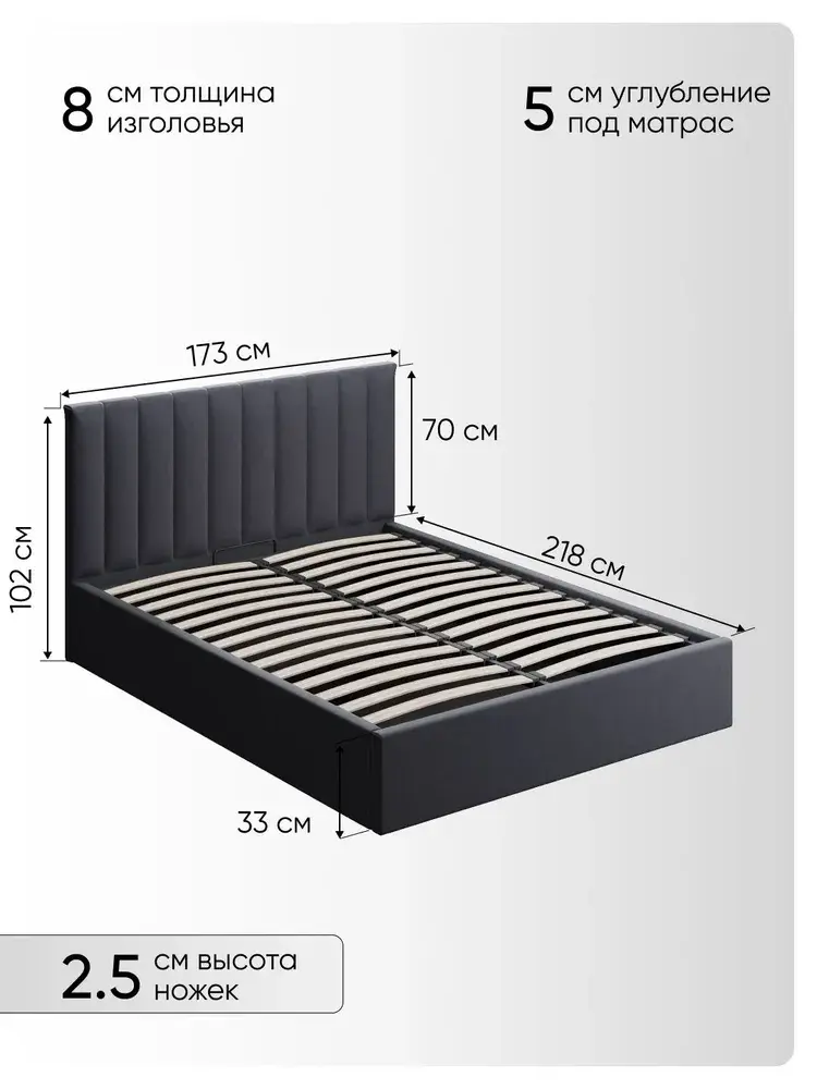 Ортопедическое основание с подъёмным механизмом и ламелями, изготовленные из экологически чистых пород древесины, выдерживают нагрузку до 125 кг. 10 летняя гарантия на металлическую рамку. Газлифты повышенной мощности позволяют поднимать и опускать ортопедическую рамку с матрасом без всяких усилий.