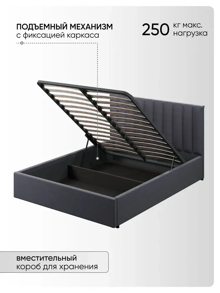 Двуспальная Кровать Алина из Велюра Премиум класса, ортопедическим основанием, с подъёмным механизмом, бельевым ящиком и спальным местом 160*200 см - удобное место для сна и отдыха, который совмещает в себе полноценную кровать от фабрики комфортной мебели МиЛоже.