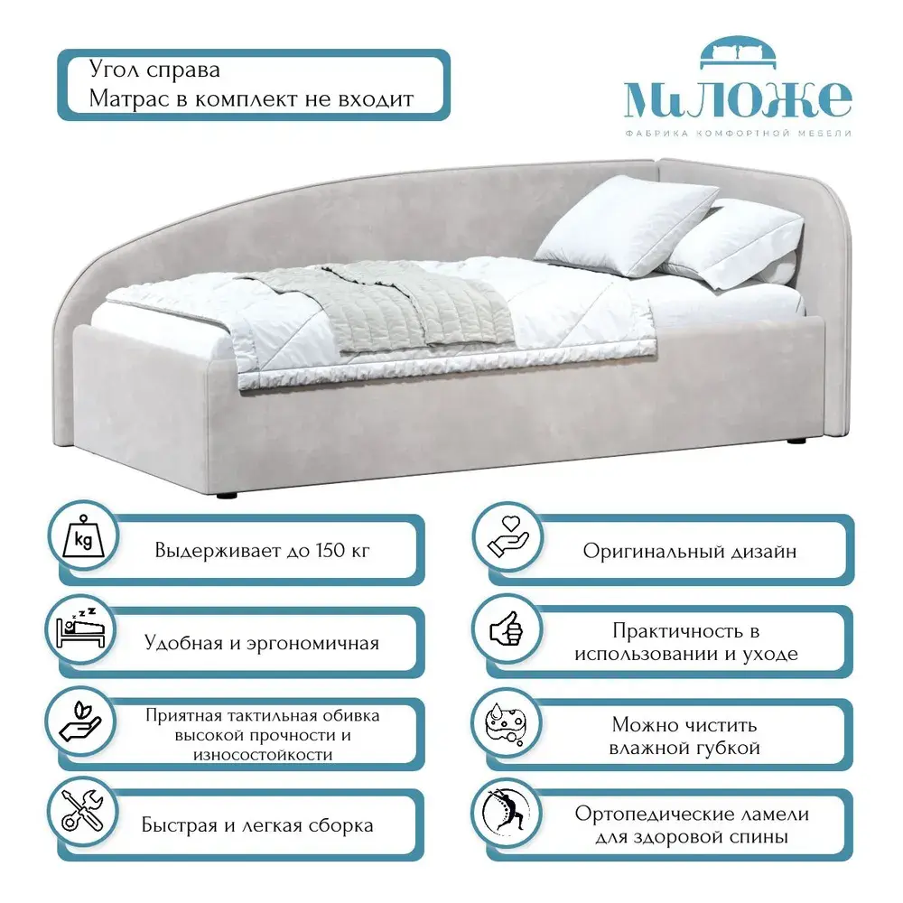 Кровать Элис 90х200 Серый Правый Угол