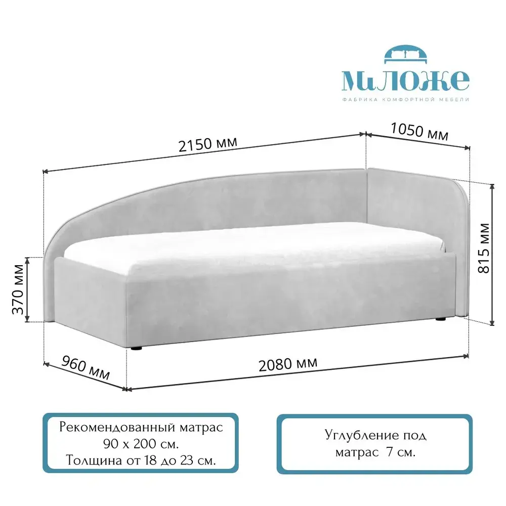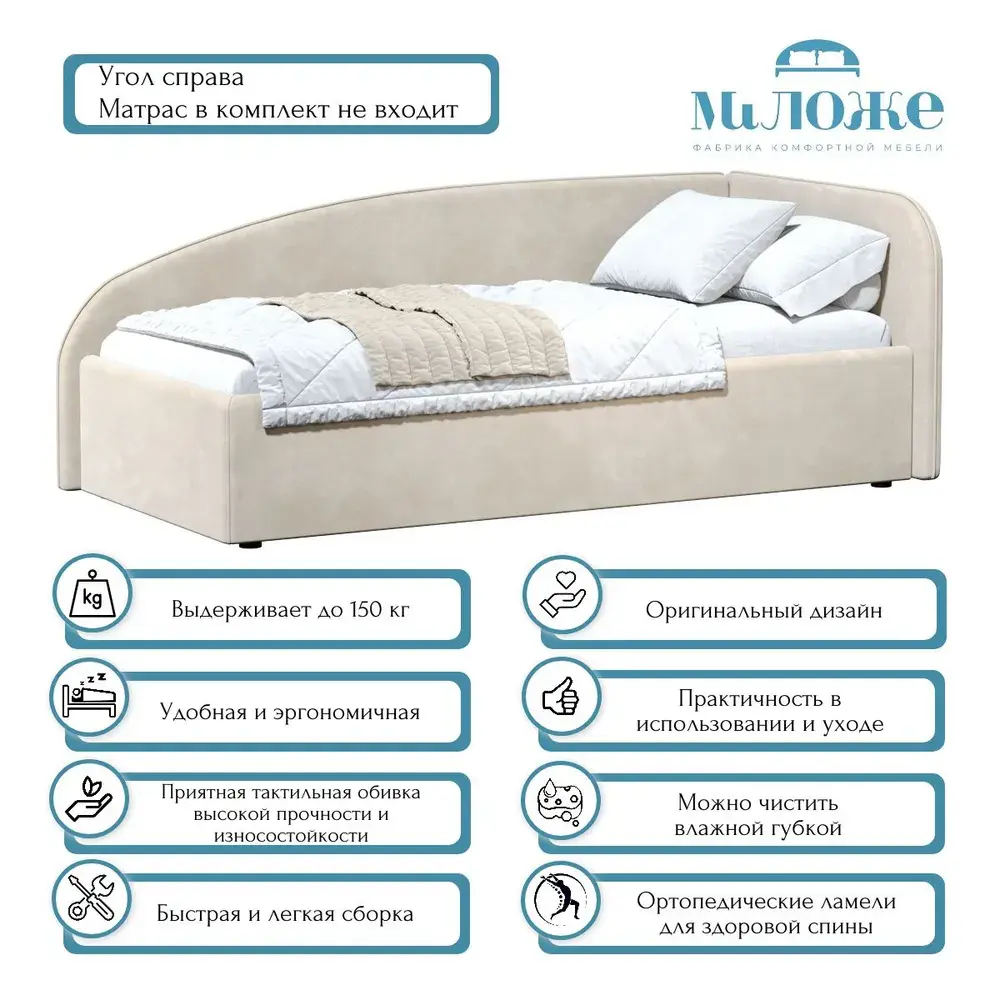Кровать Элис 90х200 Слоновая кость Правый Угол
