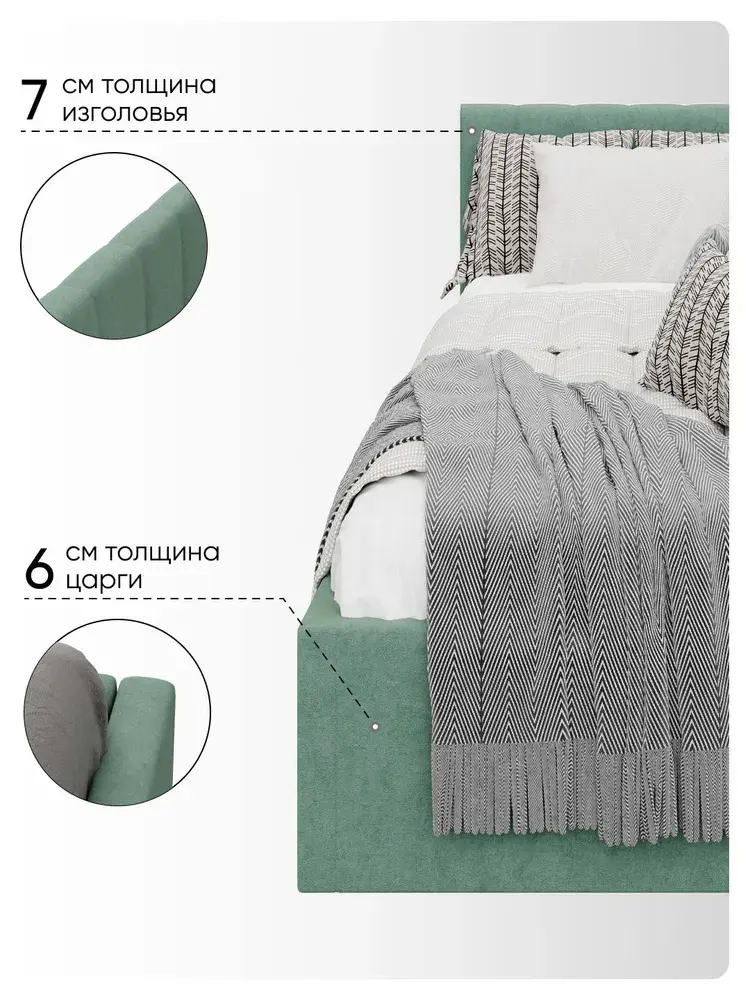 Односпальная угловая кровать 90х200 "Юлия" Мята-Велюр
