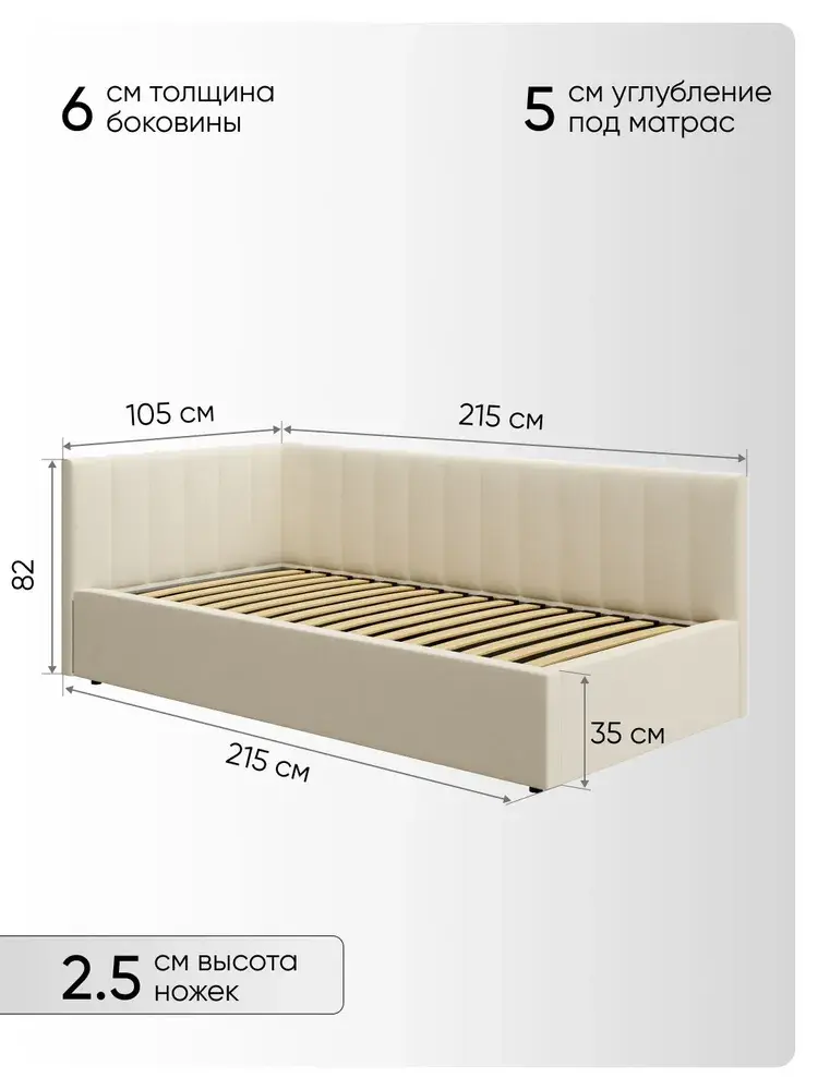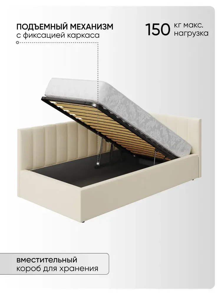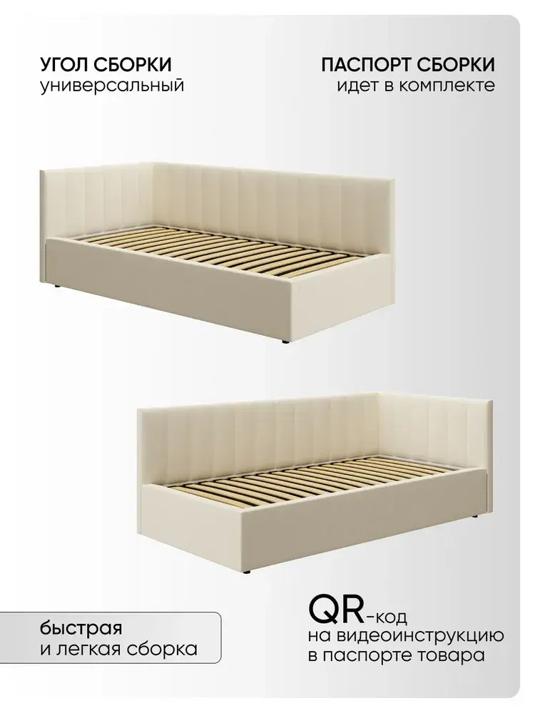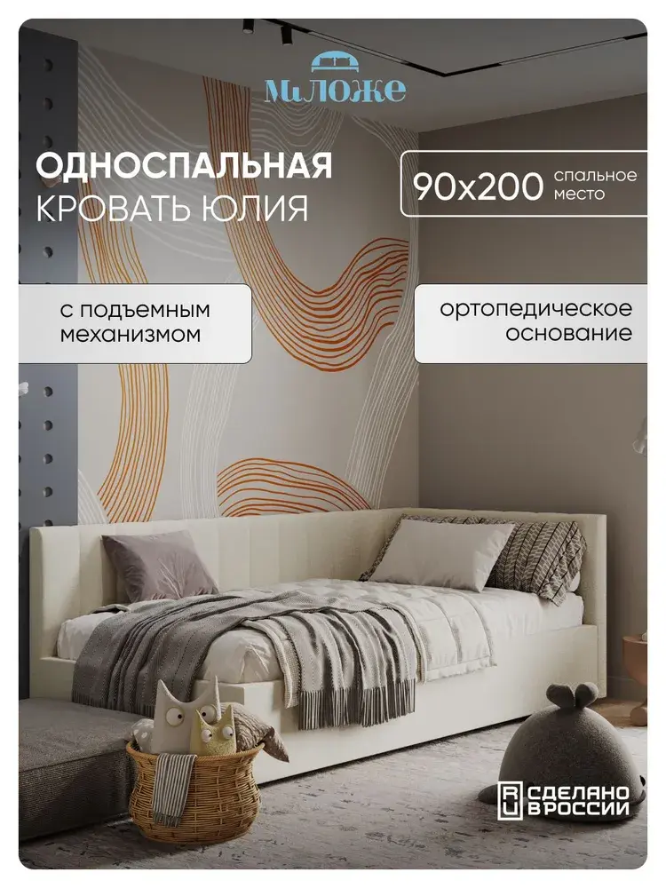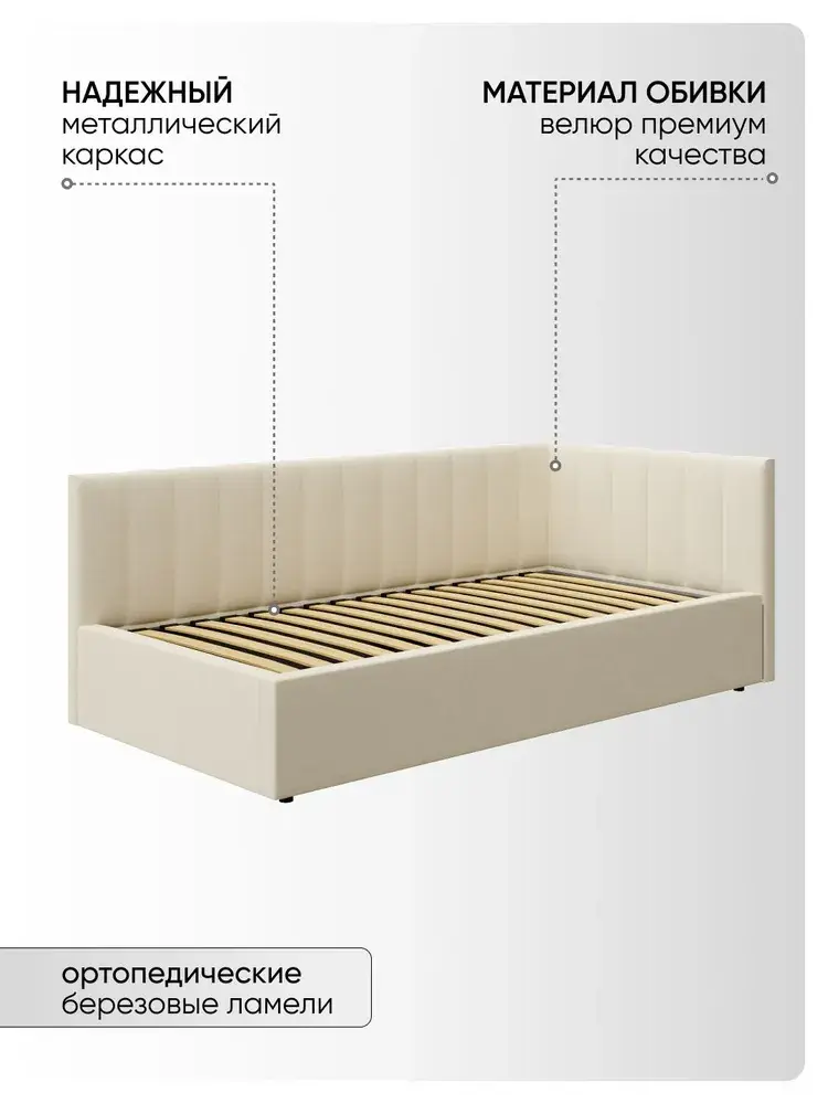 Угловая мягкая односпальная Кровать Юлия правосторонней и левосторонней сборки из Велюра Премиум класса, ортопедическим основанием, с подъёмным механизмом, бельевым ящиком и спальным местом 90*200 см - удобное место для сна и отдыха, который совмещает в себе полноценную кровать и диван от фабрики комфортной мебели МиЛоже.При выборе мягкой мебели качественная обивка является одним из решающих факторов. Обивка из Велюра Премиум – это очень привлекательная, тактильно приятная ткань с характерными переливами, мягкая и бархатистая на ощупь, отсутствие пальчикового эффекта, высокой прочности и износостойкости, гипоалллергенный, простота в уходе. Декоративная прострочка на нём выглядит эстетично и выгодно подчёркивает стиль кровати.Ортопедическое основание с подъёмным механизмом и ламелями, изготовленные из экологически чистых пород древесины, выдерживают нагрузку до 150 кг. 10 летняя гарантия на металлическую рамку. Газлифты повышенной мощности позволяют поднимать и опускать ортопедическую рамку с матрасом без всяких усилий.Подкроватное пространство закрыто противопыльным матерчатым коробом из плотного Спанбонда и служит для постельного белья и прочих принадлежностей. Спанбонд - это экологически чистый, 100% полипропиленовый нетканый материал, устойчив к сминанию и стиранию, устойчив к воздействию кислот и щелочей, имеет низкое водовпитывание, не гниёт и не плесневеет, что способствует его длительному использованию.Надежная жёсткость всей конструкции гарантирует прочность при любых "режимах" эксплуатации.Особенность данной модели – это объёмные и мягкие царги, изножье и спинки, которые становятся гармоничным завершением образа и создают ещё больше уюта.Все наши изделия - это ручная работа мастеров. Фабрика комфортной мебели МиЛоже – это собственное производство, качество, надёжность, функциональность и долговечность изделия. Производство основано на сокращении себестоимости, без потерь в качестве, что позволяет нам поддерживать привлекательный уровень цен, проводить специальные акции и предлагать выгодные скидки. В нашей команде работают квалифицированные специалисты в области производства, их богатый опыт и чёткая организация рабочих процессов позволяют нам обеспечить высокое качество мебели.